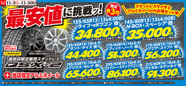 夏タイヤ、冬タイヤ、アルミセットも最安値に挑戦ッ♪