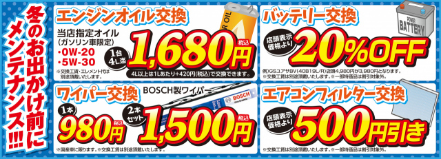 オイル、バッテリー、エアコンフィルター、ワイパーも、