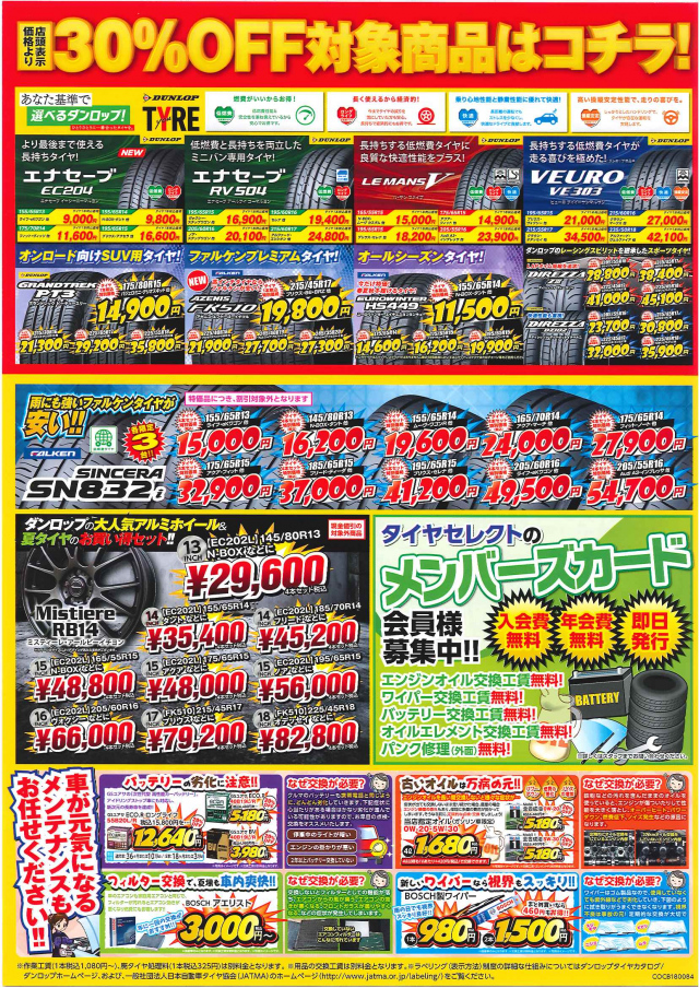 タイヤを買うなら今がチャンス‼期間限定のお買い得プライスで大放出‼