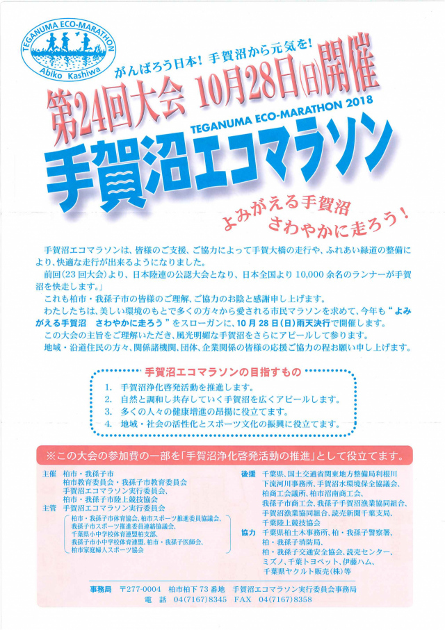 毎年恒例の『手賀沼マラソン』の時期になりました。
