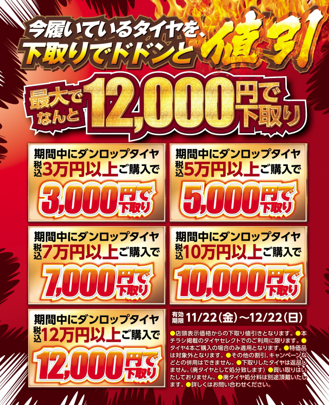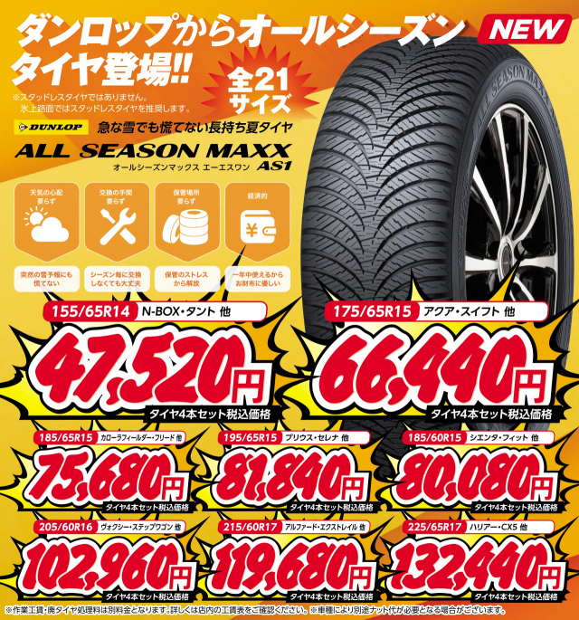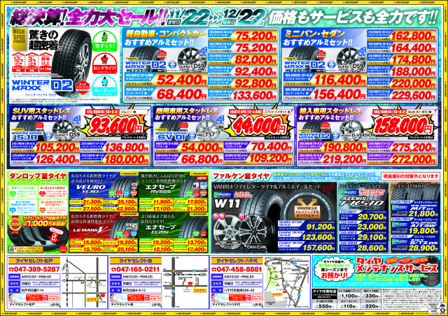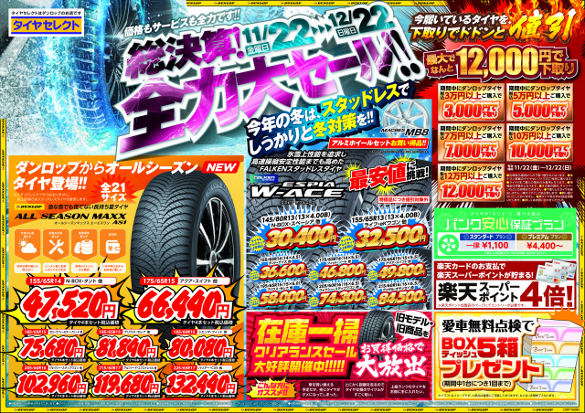 夏タイヤ、冬タイヤ総決算価格で大放出!!