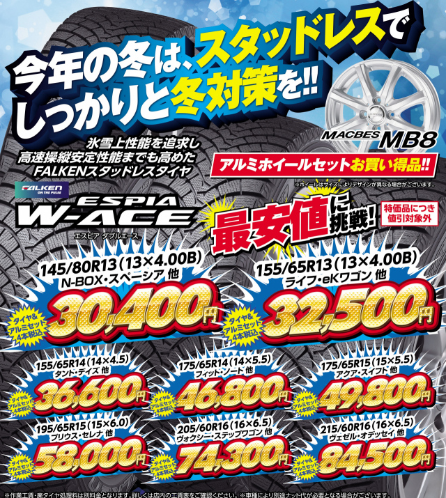 ファルケンのスタッドレス+アルミセットがこの価格!