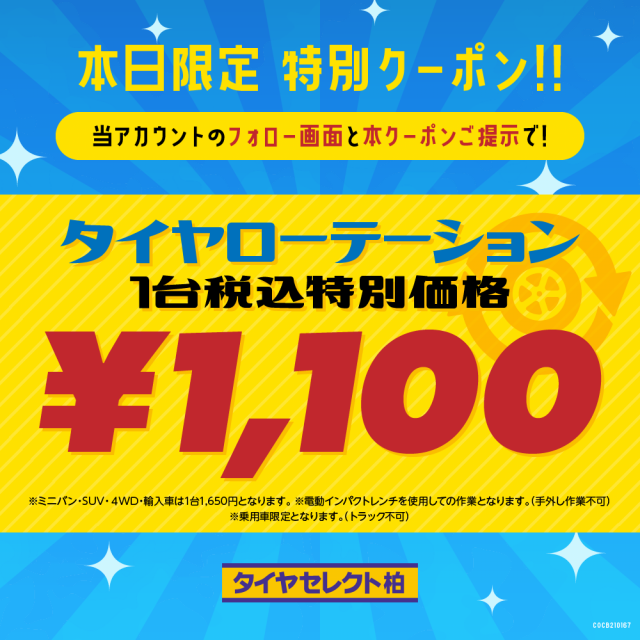 ※ローテーション⇒・ミニバン、SUV、輸入車、特殊車両は1台1650円になります。