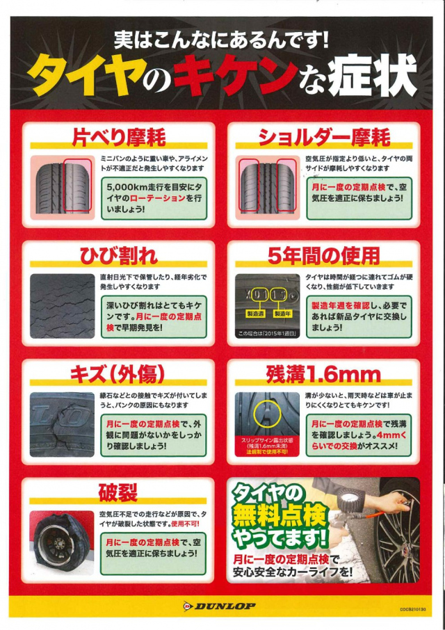 タイヤは溝があっても、経年劣化でひび割れ、亀裂が発生しやすくなります。