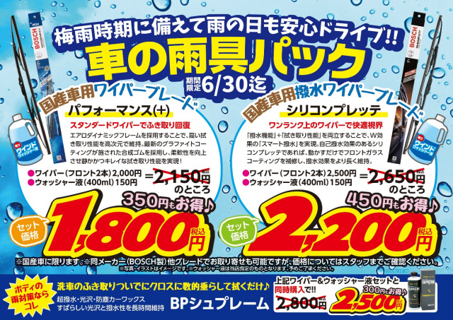 この機会に、車の雨具パックをご検討ください♬