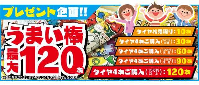 タイヤ4本ご購入・・・金額により最大120本プレゼント!