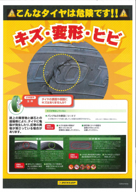 タイヤは溝があっても、経年劣化でひび割れ、亀裂が発生しやすくなります。