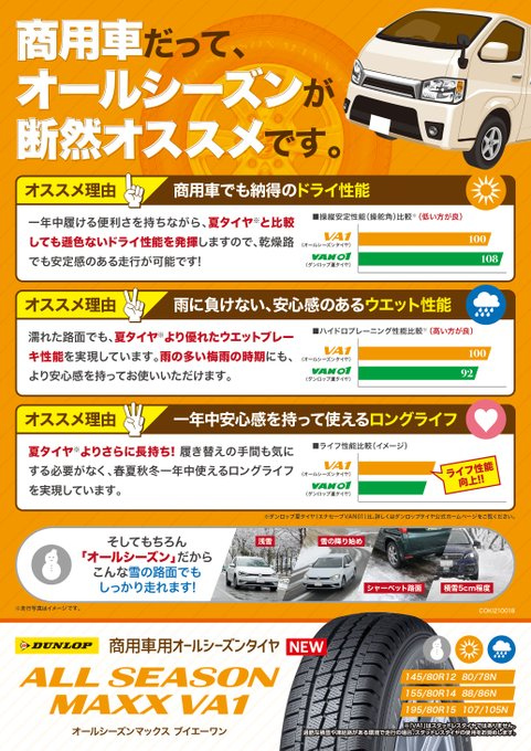 働く車にはオールシーズンタイヤ「ALLSEASON MAXX VA1」があります。