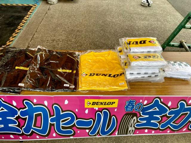 ・タイヤ4本ご購入いただいたお客様にはダンロップ限定ロゴ入りTシャツorハンドタオルをプレゼントします!!