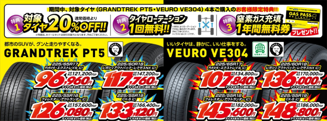 対象タイヤ(MAXX060、VE304、PT5、AT5)4本ご購入で、
