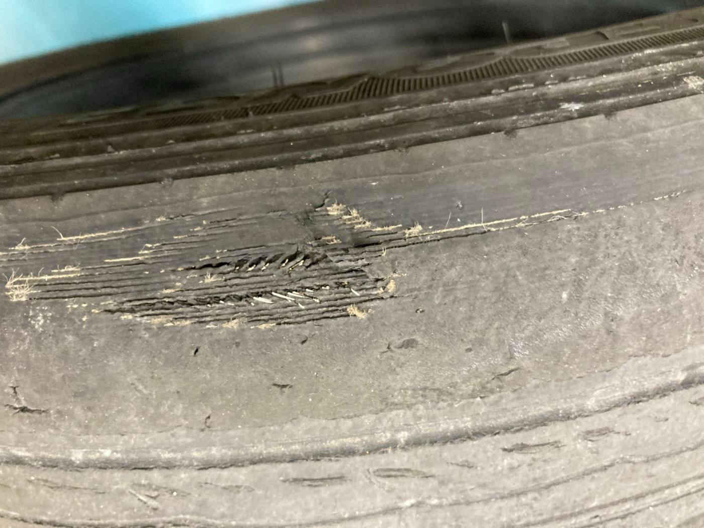 この車両もタイヤの内側(車体側)がワイヤー露出してしまっていました。