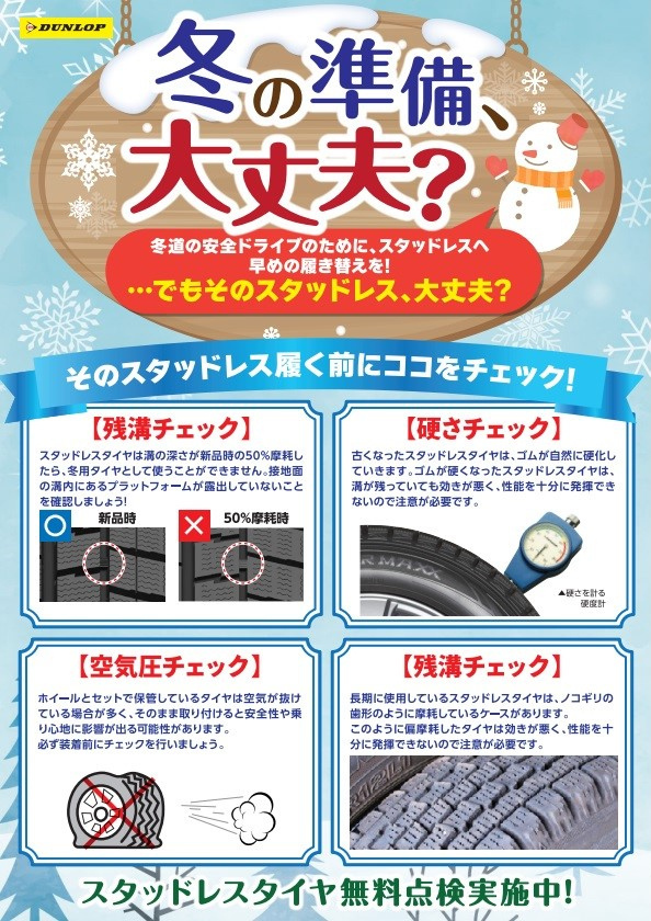 また冬タイヤも製造年数によってはゴムが硬くなってしまい冬タイヤとしての役割を果たせません。
