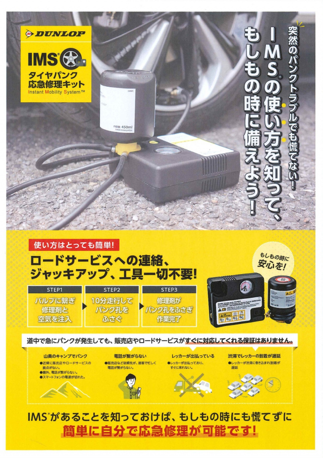 当店ではダンロップ独自のパンク修理キットIMSも販売しております。