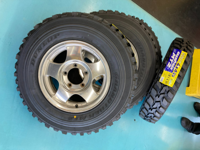 ☆ジムニー タイヤ交換。 ダンロップSUVタイヤ。 泥や岩に強く、過酷な道にも・・・。 オフロード特化しオンロードも考慮したワイドタイプ! GRANDTREK MT2(グラントレック エムティ-ツ-) ジムニーに装着です! 2024.08.08