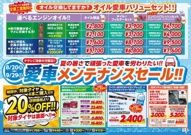※愛車メンテナンスセール、チラシ掲載のオイル価格より、
