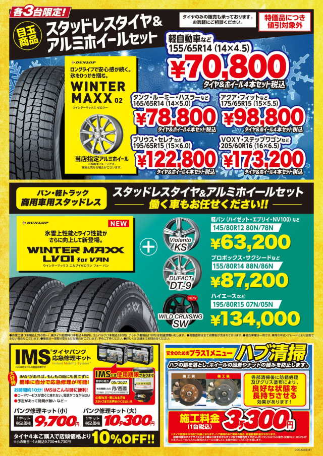 年末は混雑する予想が見込まれますので冬タイヤへの履き替えはお早めに!