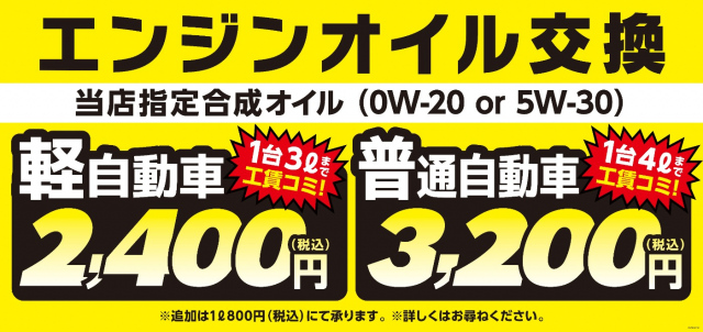 12月のエンジンオイル交換のみの作業予約は