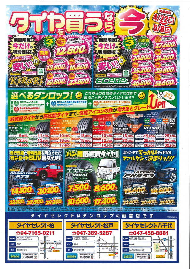 という事で、タイヤセレクト柏店では『GWお出かけ前のお車点検』を無料で実施しております。