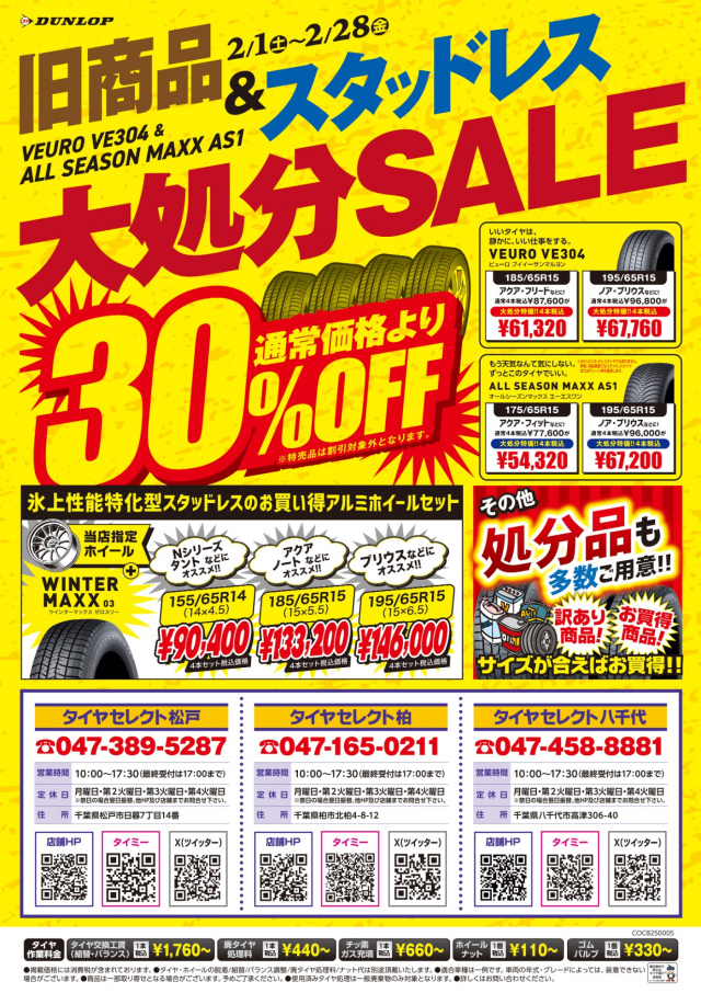 旧商品&スタッドレス大処分SALEを開催中です♬