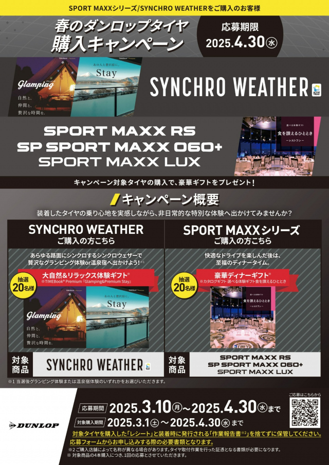春のダンロップタイヤ購入キャンペーン実施中です。