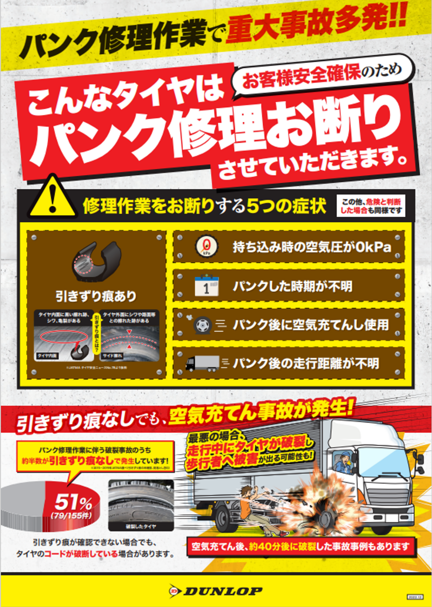上記の画像のような状態のパンクに関しましては