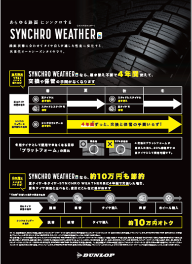 CMで話題の次世代オールシーズンタイヤのシンクロウェザー、店頭で展示中です!
