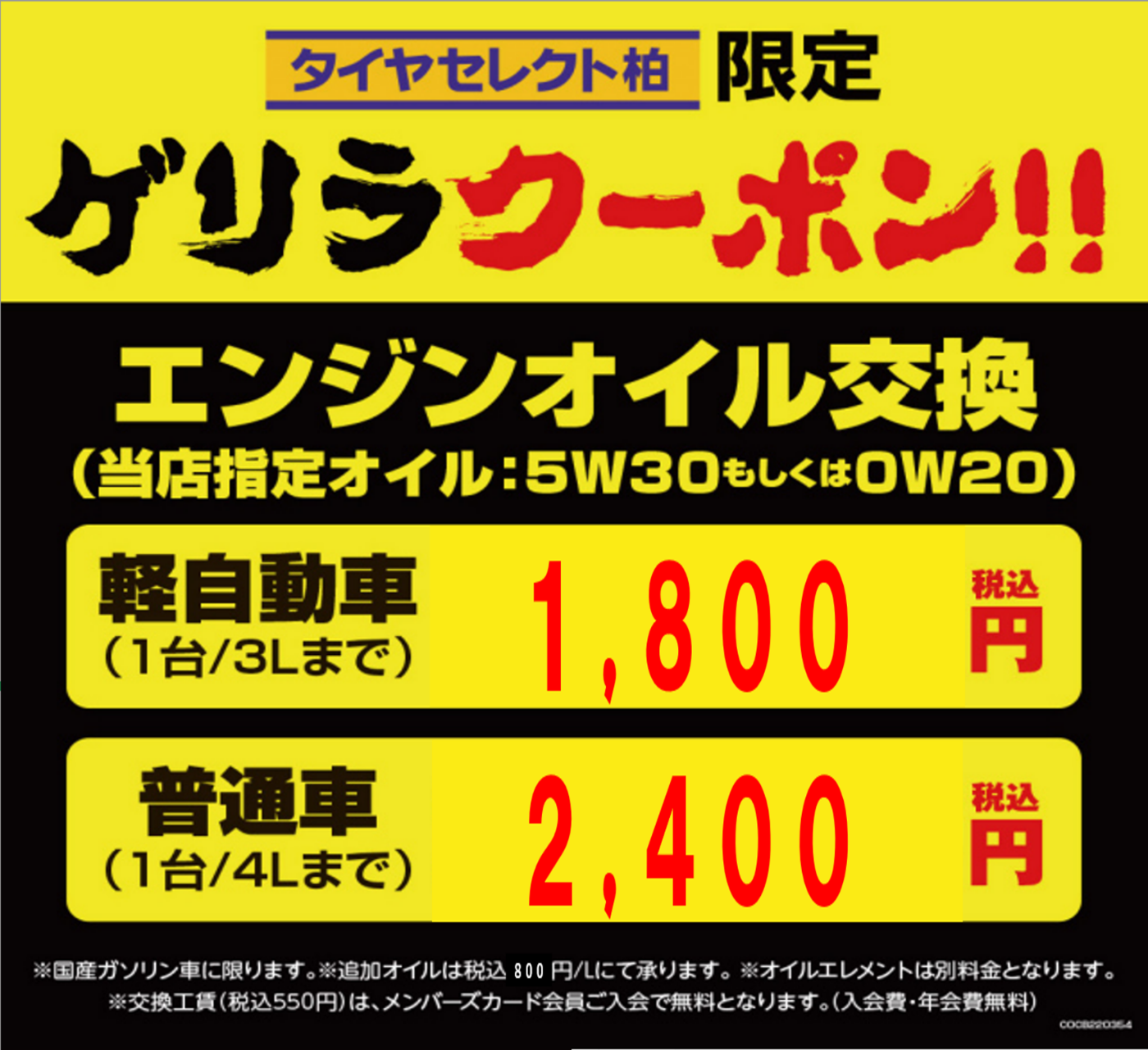昨日から明日までの3日間オイルゲリラクーポン発生しております!