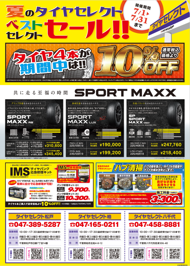 更にタイヤ4本ご購入のお客様にタイヤパンク応急修理キットを店頭通常価格より10%OFFでご提供!