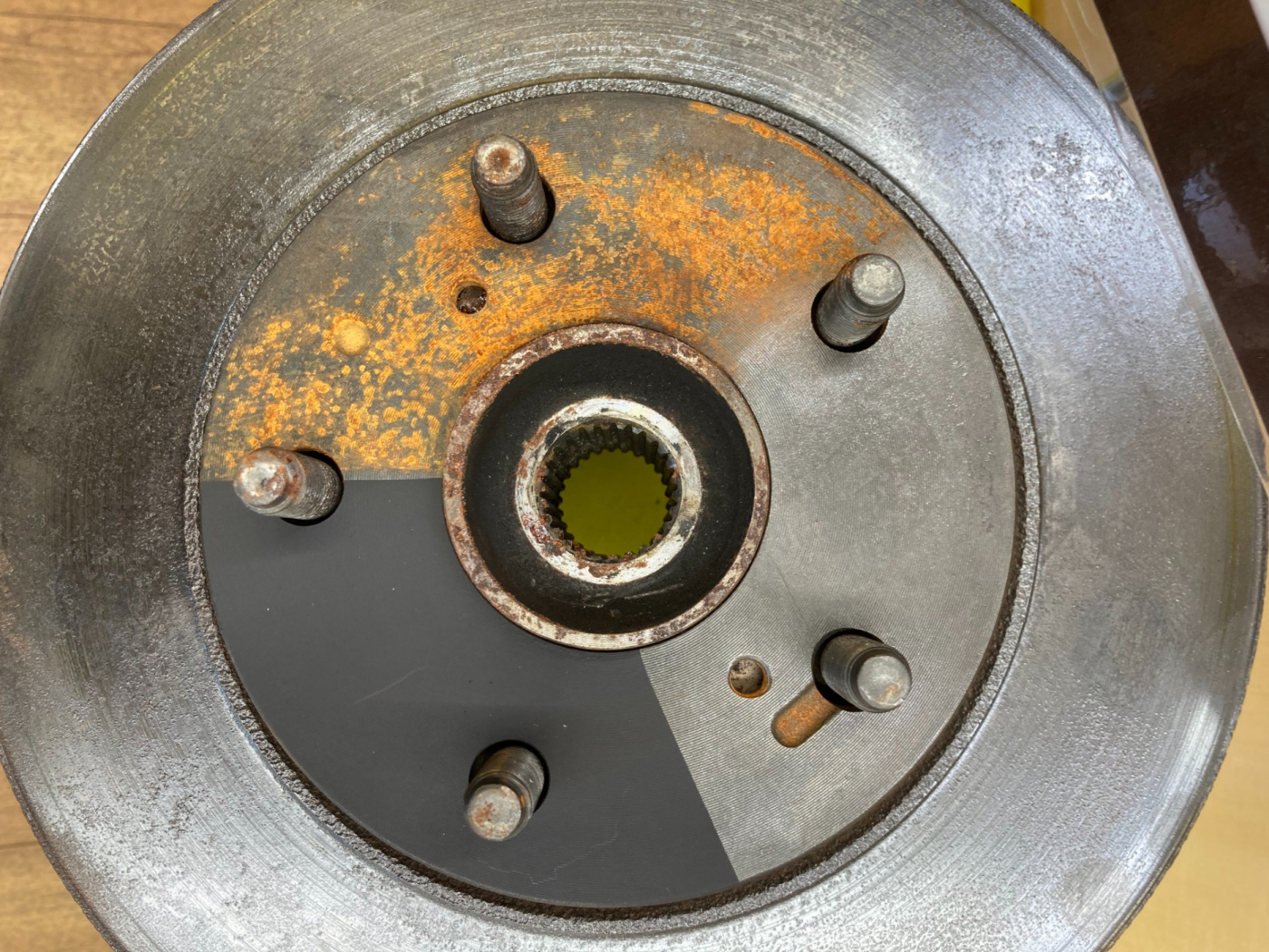 錆びている部分が清掃前・錆落としをした部分・防錆塗装後の部分。