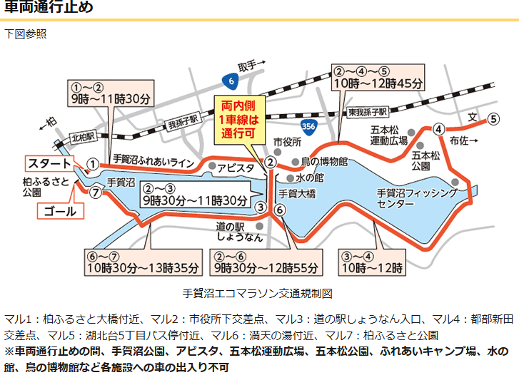 10月26日 (日) 手賀沼エコマラソン開催に伴い、交通規制が実施される為、営業開始時間が変更になります。
