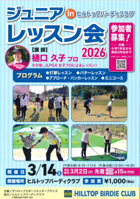 今年もヒルトップバーディクラブで樋口久子プロのジュニアレッスン会を開催!