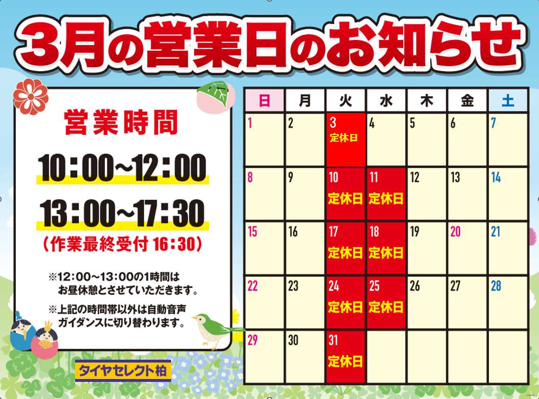 3月の営業日の案内になります。
