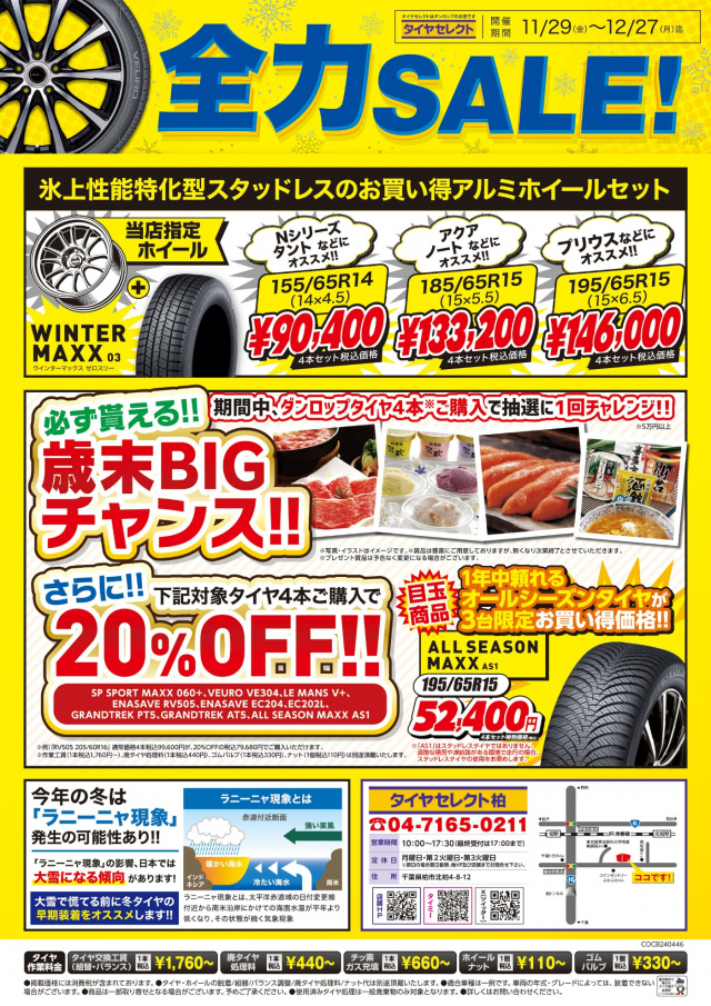 ホームページをご利用頂きありがとうございます。 只今、冬の全力セール開催中!! ダンロップ オールシーズンタイヤの旧モデル!! AS1の1サイズ限定(195/65R15)が 残り2セットになりました。 ※アルミホイー...