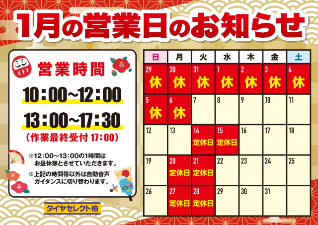 いつもホームページをご利用いただきありがとうございます。 2024年もたくさんご利用いただきありがとうございました! 来年もよろしくお願いいたします。 来年1月の営業日のご案内です。 来年1月の営業...
