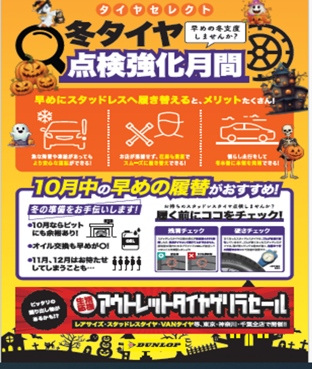 いつもホームページをご利用いただき有難うございます♬ 10月は冬タイヤ点検強化月間です! すり減ったタイヤや溝があっても年数が経過したタイヤはスタッドレス性能が低下していますので心配ですよね。 今のうちに冬タ...