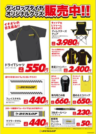 いつもホームページをご利用頂きありがとうございます♪ 毎日、暑い日が続いていますね・・・ 当店ではダンロップオリジナルグッズを販売中です! オリジナルグッズの購入だけでも大歓迎♬ この機会に是非、ゲットしません...