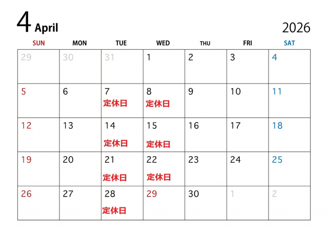 お世話になっております タイヤセレクト八千代です 4月の営業案内になります また2026年からシーズン料金を導入しておりますので 4月・12月の履き替え料金が通常価格に+¥1,100別途かかりますので ご了承下さい