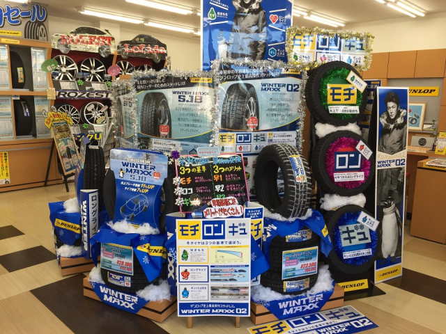 スタッドレスタイヤやオールシーズンタイヤも陳列し、一気に季節感が変わりました。