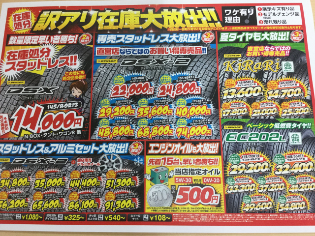 当店ではスタッドレスタイヤの在庫一掃処分セールを実施中です!!