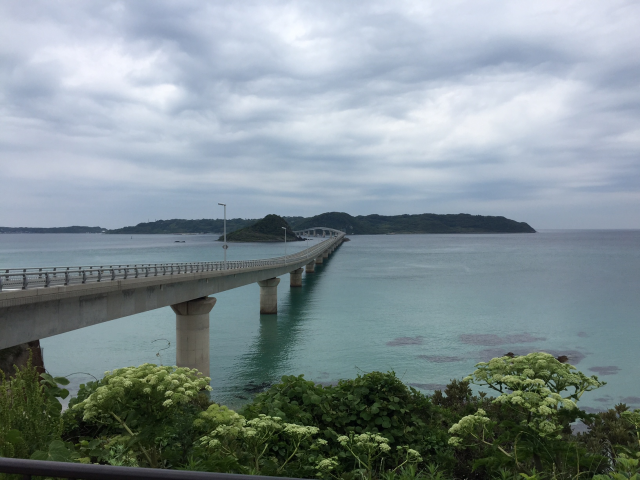 「角島大橋」は最近インスタ映えスポットとして若者にも人気のある絶景スポットです。天気がいい日には海のコバルトブルー色が映えるいい写真が撮れるみたいですがこの日はあいにくの曇り…