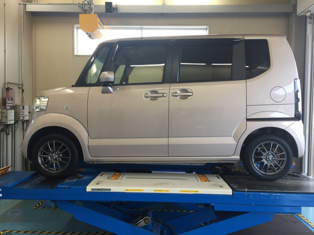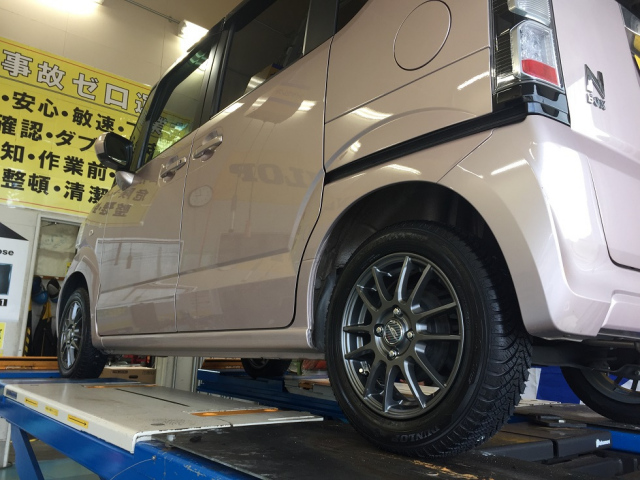 ホンダ N-BOXに、アルミホイールも新品でお取り付けです。