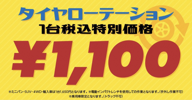 3.タイヤのローテーションが1台特別価格¥1100(税込)
