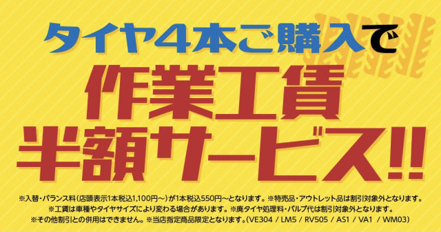 2.タイヤ4本ご購入で工賃半額サービス!