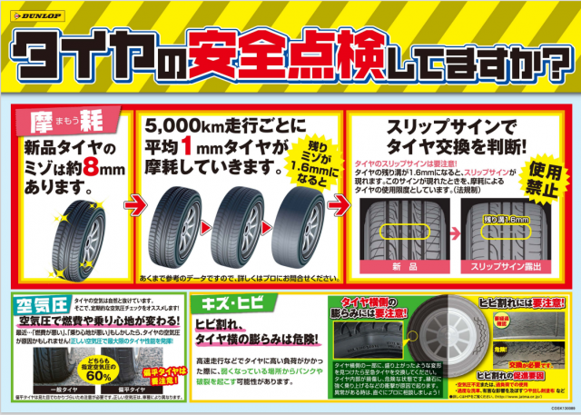 また快適なドライブにはタイヤの安全点検は欠かせません。