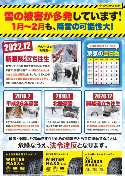 まだまだ寒い日が続いておりますが、1~2月も降雪の可能性があります。
