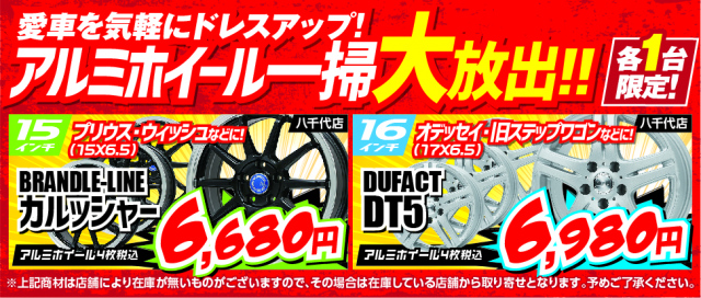 タイヤ・アルミホイールをはじめ、オイル交換も大変お買い得となっております。