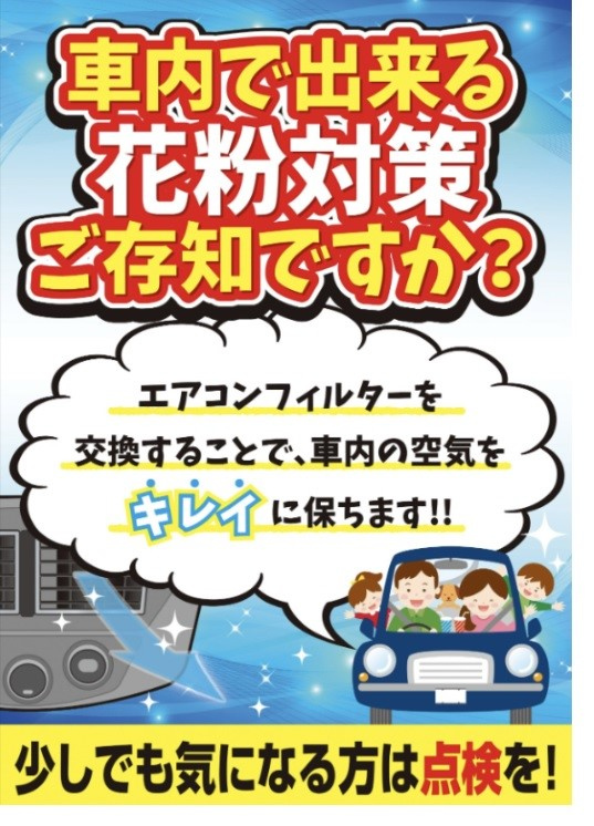 様々な花粉対策がありますが、お車にも対策をオススメします。
