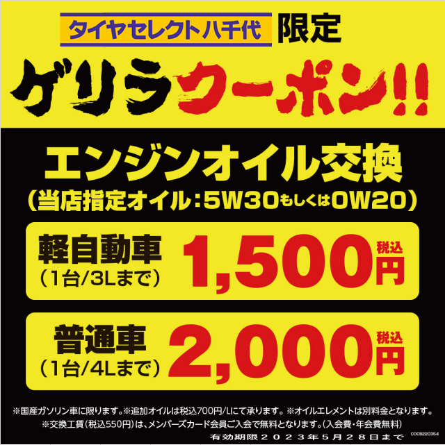 また、今月の28日までオイルゲリラクーポン発動中です。