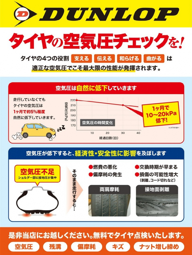 空気圧・残ミゾ・キズなどしっかり点検させて頂きます。