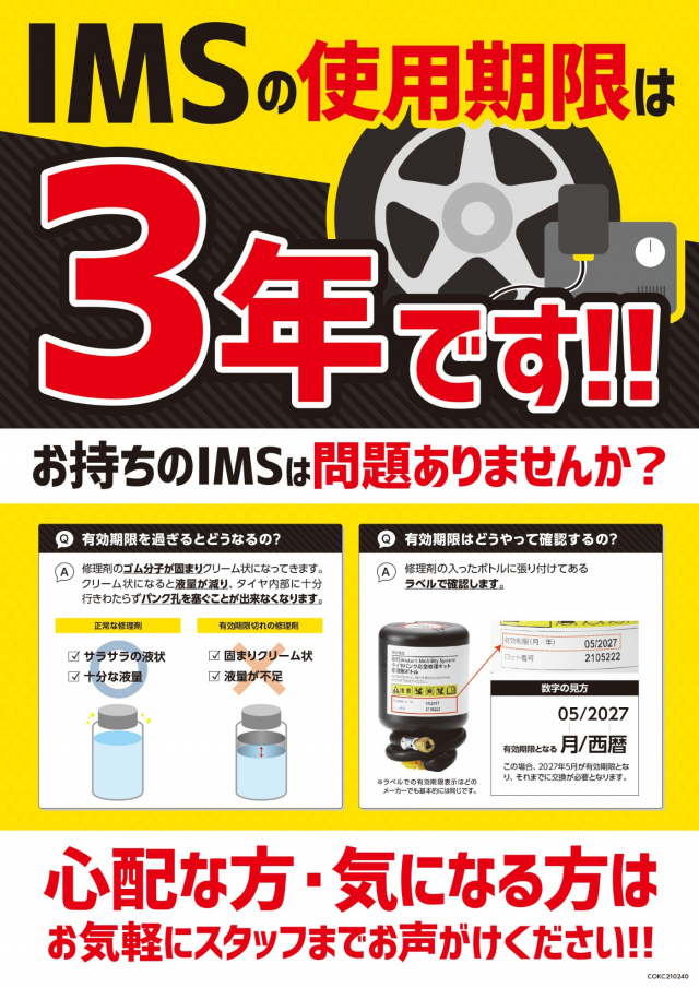 パンク修理キットの交換・点検は当店にお任せ下さい。